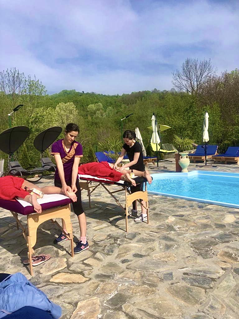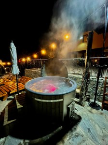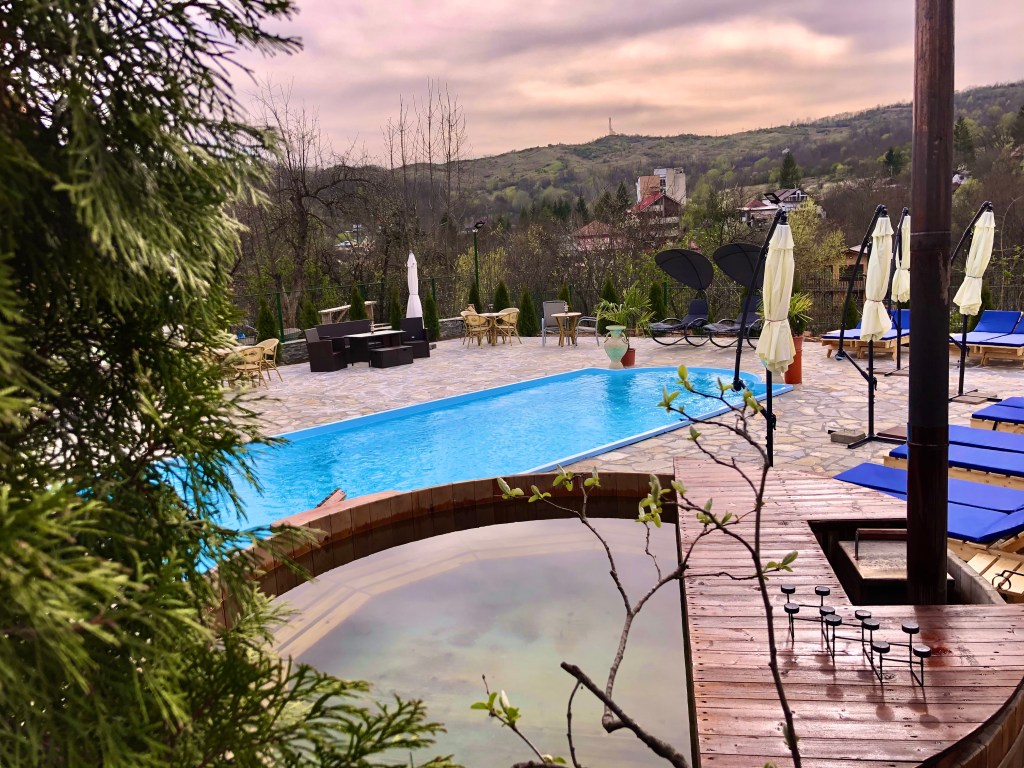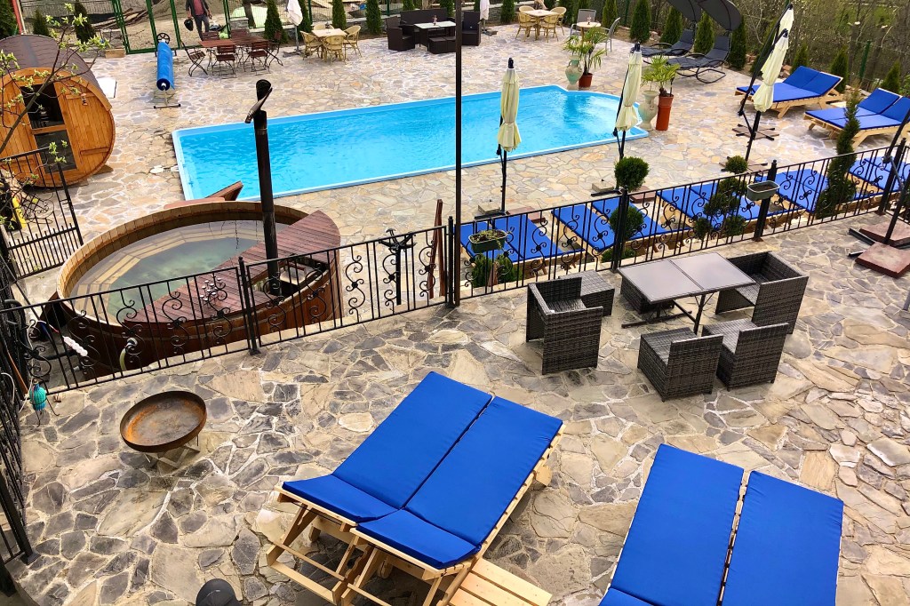 Piscina exterioara, 2 ciubere cu jacuzzi și cromoterapie, cu temperatura apei de 40 de grade, saună uscată cu uleiuri esențiale și accesoriile necesare pentru o experiență foarte plăcută, masaj kinetoterapeutic pentru toate gusturile.